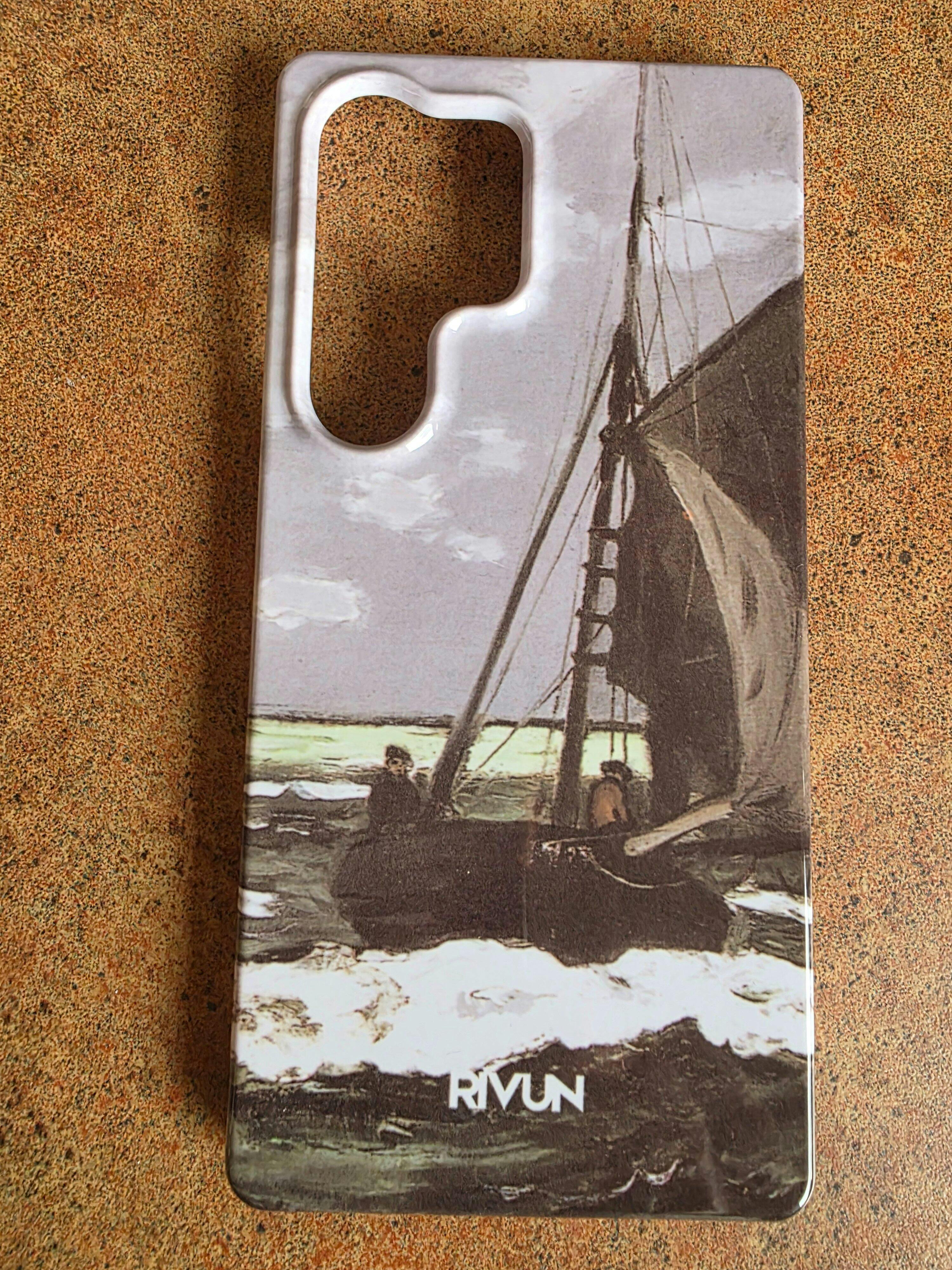 Nerami, stichijos sukaustyta jūra – audros akivaizdoje Monet perteikia gamtos didybę ir nenuspėjamumą. Stori, tamsūs potėpiai, žalsvai pilka vandens masė ir dangų raižantys debesys kuria įtampą, kurią galima beveik girdėti. Čia nėra saugumo – tik jėga, judesys ir amžinas bangavimas. Šis dėklas – tai emocinis kraštovaizdis, kupinas laukinės energijos ir nevaldomos gamtos grožio.